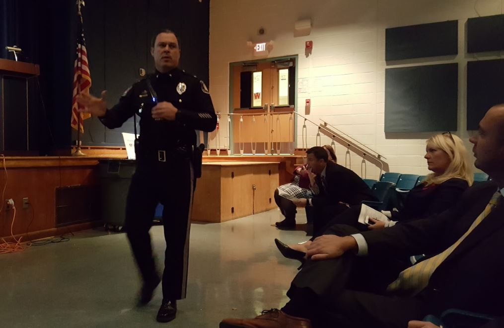 The Wall Township Police Department participated in two anti-drug/alcohol use presentations for Red Ribbon Week. On Wednesday, October 26, 2016, Lt. Chad Clark conducted a presentation concerning trends in drug use and underage consumption of alcohol as part of the Wall Alliance Parents Needed: Prevent Underage Drinking, Set Clear Rules Program hosted at Wall High School. On Thursday, October 27, 2016, Detective Lt. Greg Carpino, Juvenile Detective Rick Pasqualini and Juvenile Detective Tom Lasko conducted a presentation at Wall High School regarding the dangers of drug use and underage consumption of alcohol to an audience of Wall High School students.